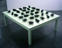 En la misma galería la artista coreana afincada en Estados Unidos Won Ju Lim exhibía una instalación de edificios iluminados. Ciudades imaginarias que nos alejan del concepto campestre para adentrarnos en el barullo de una ciudad desnuda de habitantes y plena de edificios iluminados con diferentes colores, activos, que forman son parte indispensable de la vida humana.