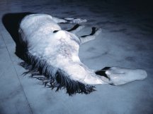 Quizás una de las piezas más impactantes de la feria de ARCO sea la presentada por la Galería Italiana Continua, en ella el artista Berlinde de Bruyckere nos presenta una escultura/instalación de un caballo de color crema muerto tirado en el suelo, extremadamente delgado y sin duda sorpréndete. ¿Disecado, real o rellenado? Son algunas de las preguntas que vienen a la mente nada mas ver la obra. Admiración y tristeza de ver a un animal tan bello tirado en el suelo sin ningún tipo de reacción ni de movimiento. Su realismo hace que la crudeza de la imagen impacte al espectador y no deje indiferente, eran numerosos los comentarios de la gente que contemplaba la pieza. Comentaba la galerista que había vendido uno al jugoso precio de 100.000€, sin duda un buen negocio y una buena inversión.