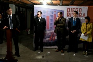 Mural Diego Rivera en la presentación, "cierra el triángulo