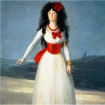 En la obra original del pintor zaragozano aparece la aristócrata, miembro de una de las mayores casas terratenientes de Europa, señalando la tierra. Con este sencillo gesto, ella se proclama dueña de la tierra.