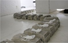 Compuesta por un total de 370 ataúdes de yeso y cemento convertidos