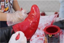 par de zapatos y los impregnaban en pintura roja. La acción tenía