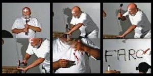 El mito de Leda y el cisne escenificado con seducción erótica entre Otto, una mujer, y una oca que termina degollada a manera de rito sacramental en el que continúan bañándose en la sangre que fluye desde el cuello cercenado y masturbándose con su cabeza; Eros y Tánatos fusionados. Ese impacto que deja una actuación así se aúna a la impresión provocada por Pierre Pinoncelli que se mutila el meñique en un festival de performance en Cali (Colombia) en 2002 en protesta por el secuestro de Ingrid Betancourt por las FARC.