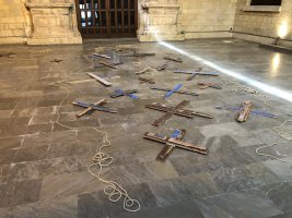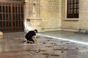 Pero en este proyecto sobre las migraciones, la cruz sirve como símbolo y como sepultura, que es lo que representa cada una de estas piezas.