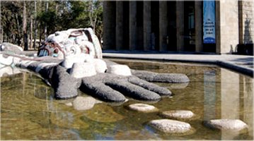 en el espejo acuoso lanza al espacio la escultura extendida sobre él.