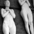 bajo el ábside de la iglesia un grupo de esculturas en yeso junto