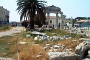 El foro romano es el tercer hito de nuestra visita, y un lugar perfecto para completar nuestra visión de conjunto sobre los matojos y las malas hierbas que acompañan a todo monumento descuidado. El punto fuerte lo encontramos en la Torre de los Vientos (s. I a.C.), edificio de mármol utilizado como reloj de agua en la Antigüedad y que aún hoy ofrece un excelente estado de conservación.