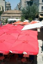 De vuelta a Atenas, una buena opción es cenar en Monastiraki y tomar algo en las terrazas cercanas al ágora, desde donde podremos disfrutar de una vista inigualable de la Acrópolis iluminada si no nos importa pagar los desorbitados precios de los locales de la zona. La calle norte del ágora, junto a la Stoa de Atalo, nos ofrece unos cuantos locales donde tomar algo, entre los que podemos destacar Gallery (33, Adrianou). Este local, que combina el gran ambiente de un auténtico bar de copas con una carta bastante aceptable, puede ser el lugar ideal para tomar una copa o alguno de los licores tradicionales griegos. Eso sí, si nos decidimos por un batido (una bebida muy frecuente entre los atenienses), deberemos tener en cuenta que no sirven chocolate a partir de las diez de la noche.