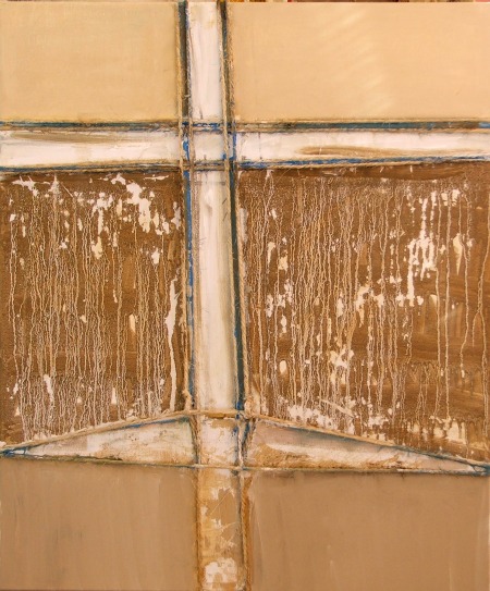 Crucifixión 06, Técnica mixta y collage sobre tela, 65 x 54 cm., 2007.