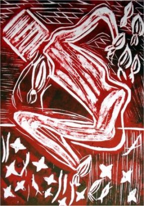 Xilografía P/A. Serie: 'Pañales y Pañuelos', '...salto al vacío',