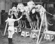 El público, serio. Nadie come. Otra vez el rugir del león.