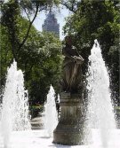 agua no brota de su centro. Miro el parque Juan Rulfo a la distancia.