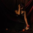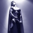 hoja, con un paño, en ropa interior o con un traje de chaqueta,