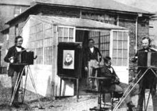 Era una época en que el estudio de las personas y sus caracteres aparecía como la gran preocupación, quizá porque las cámaras de entonces daban sus mejores resultados con retratos de primer plano. El retrato seguía siendo la gran posibilidad comercial de la fotografía. En 1854 Disdéri irrumpe en París con su formato del tamaño de una tarjeta de visita. Con una máquina de su invención, que había patentado, provista de cuatro objetivos, obtiene una serie de fotografías que luego son recortadas y montadas sobre cartón. Este procedimiento, por fin destrona al daguerrotipo.