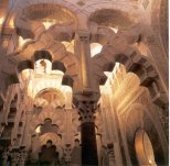 herradura en la parte media. Posteriormente, en el siglo X, Abderraman III, amplia el patio (Patio de los Naranjos) y construye el alminar. Más tarde, también en el siglo X, Alhaquen II inicia la gran reforma de la mezquita, se vuelve ampliar tirando el muro de la quibla. En la macsura se disponen magníficas bóvedas de crucería y mosaicos de artistas bizantinos y musulmanes. Al mismo tiempo que se prodiga una fastuosa decoración con motivos vegetales y epigráficos.