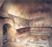 Se pueden observar las termas con todas sus salas: frigidarium, agua