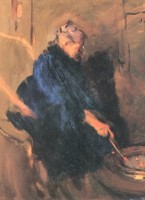madre del artista removiendo un brasero, óleo sobre tela,